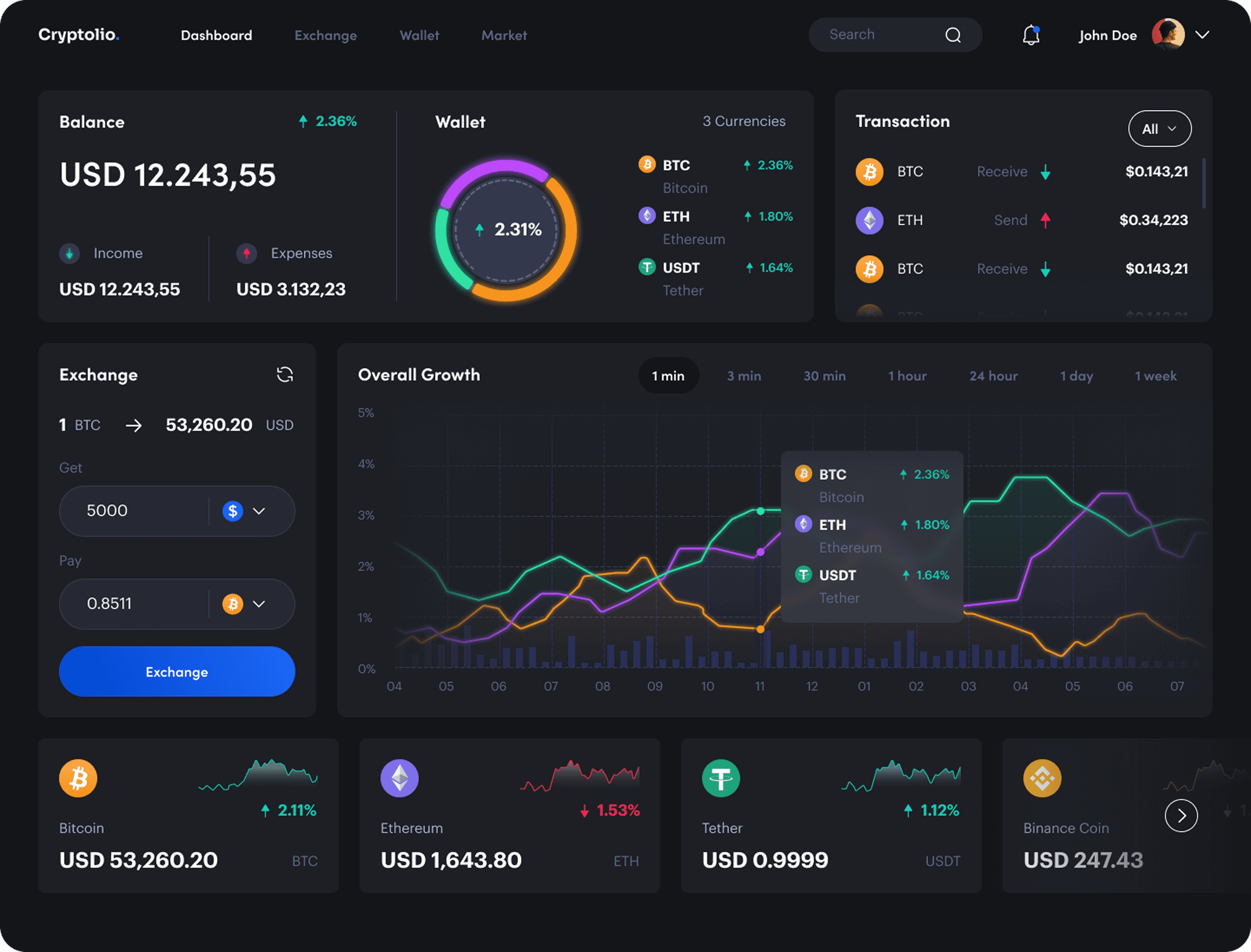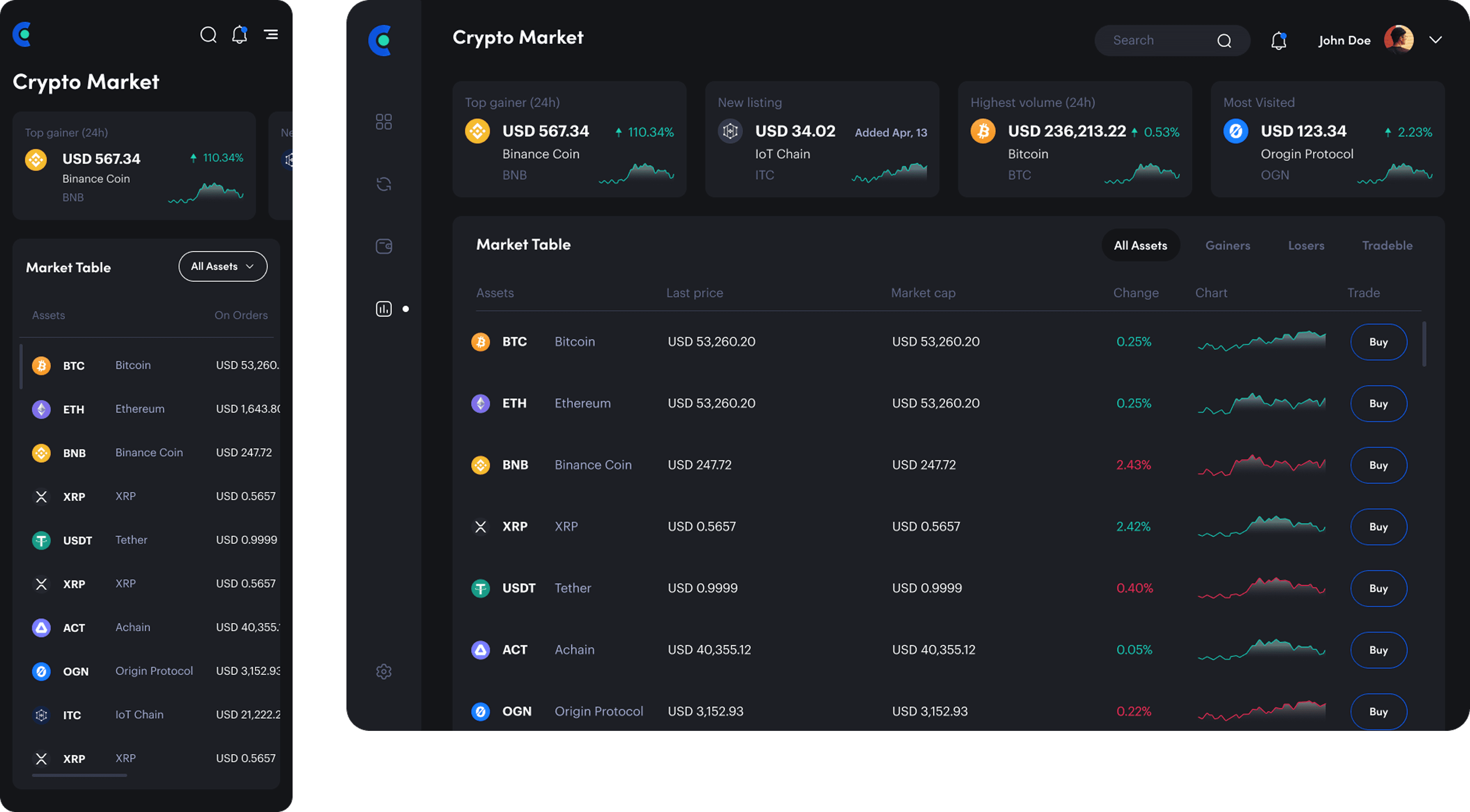 This project involved designing a full end-to-end crypto trading platform—covering onboarding, analytics, portfolio management, trading charts, order flow, and user wallets. The primary goal was to simplify complex financial information while maintaining professional depth for experienced traders.